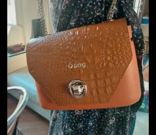 Borsetta O bag in ecopelle effetto coccodrillo e base arancione. - Chiusura a girello. - Tracolla a catena. - Logo O bag impresso. Nuovo con scontrino