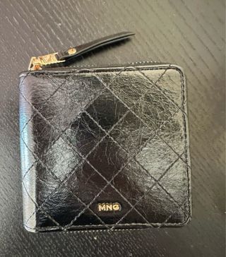 Elegante portafoglio in ecopelle nera con trapuntatura a rombi. - Chiusura con zip. - Dettaglio logo MNG dorato. - Zip con tirante in ecopelle.