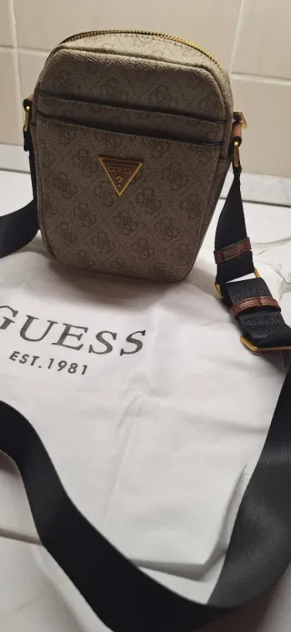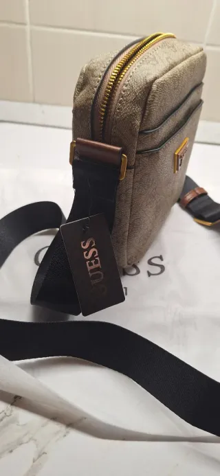 Borsello da uomo Guess, un accessorio pratico e alla moda. 15×18 - Fantasia monogramma Guess. - Logo triangolare Guess sul davanti. - Tracolla regolabile. - Chiusura con zip.