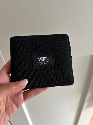 Portafoglio della marca Vans per uomo. Design in colore nero. Etichetta con logo Vans Off The Wall Since 1966.