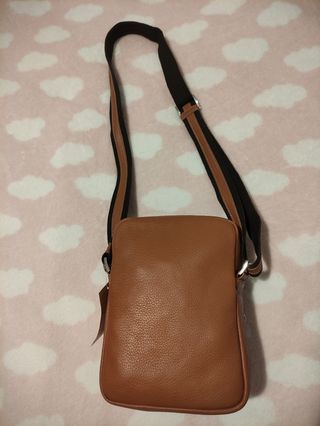 Bandolera in pelle per uomo. Colore marrone. Chiusura con patta. Cinturino regolabile.