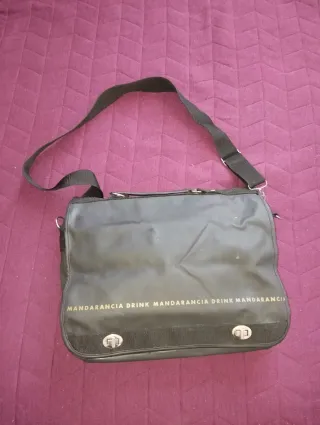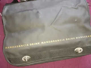Borsa a cartella da uomo, ideale per l'ufficio o per il tempo libero. Presenta una stampa ripetuta MANDARANCIA DRINK lungo la parte inferiore. - Chiusura con due bottoni a pressione. - Tracolla regolabile e manico - morbida e molto ampia - sulla faccia interna presenta 3 tasche per oggetti da ufficio - misure 40x32cm - in simil pelle
