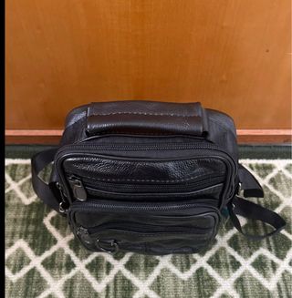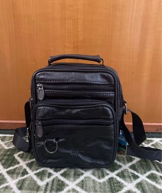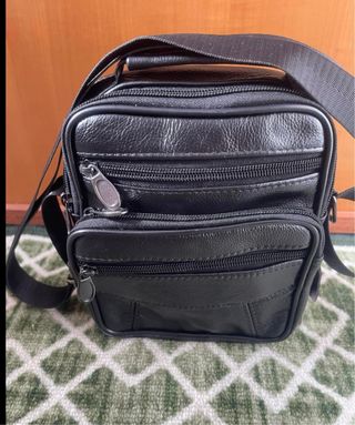 Borsello da uomo in vera pelle, pratico e resistente. - Materiale: vera pelle - Misure 19 cm altezza 16 cm larghezza - Colore: nero - Tasche multiple con zip - Tracolla regolabile