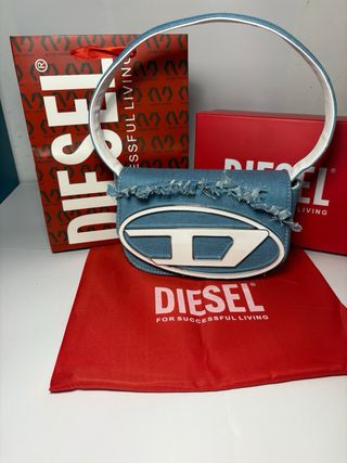 Borsa Diesel in denim, nuova e mai utilizzata. Un accessorio alla moda per completare il tuo look. - Logo Diesel bianco. - Dettagli sfrangiati sul bordo superiore. - Tracolla regolabile inclusa. Spedizione entro 24h📦✅️