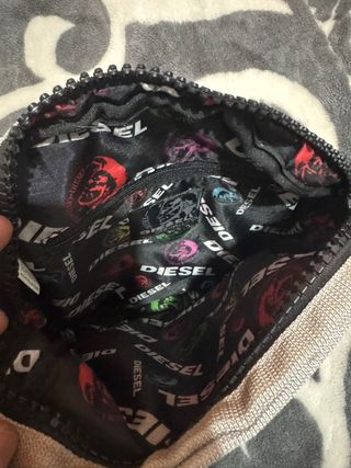 Necesser del marchio Diesel in colore marrone. Ha un design moderno e pratico. Include una borsa abbinata se ti interessano entrambe le parti.