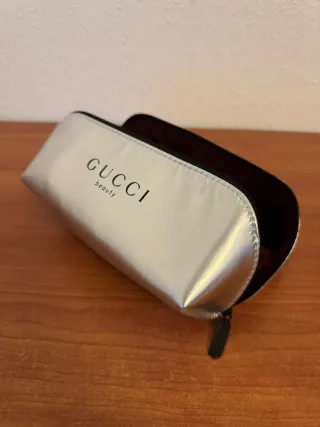 Borsa da toilette del marchio Gucci in colore argentato. Un accessorio elegante e pratico. - Design brillante. - Interno foderato.