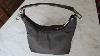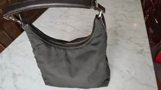 Borsa a spalla Gucci in tessuto resistente. Un accessorio elegante e pratico. - Materiale: Tessuto - Colore: Nero - Dettagli in pelle marrone - Chiusura con zip