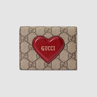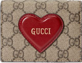 Portafoglio con iconico monogramma e applicazione a forma di cuore. - Monogramma GG all-over. - Dettaglio a forma di cuore rosso. - Logo Gucci stampato sul cuore.