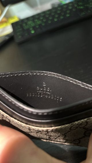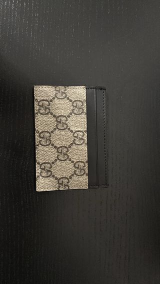 Portacarte Gucci. Mai indossato. marrone. nella foto. Realizzato nell'iconico tessuto GG Supreme beige ed ebano, rifinito con dettagli in pelle Prodotto originale con numero di serie leggibile Numero di serie: 233166•493075