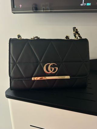 Elegante borsetta Gucci nera con finiture dorate. - Design trapuntato a chevron. - Logo GG dorato sul davanti. - Catena dorata per tracolla. Prodotto visto e piaciuto non accetto resi