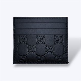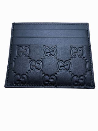 Elegante portacarte Gucci con iconico motivo GG. - Realizzato in pelle nera. - Design con finitura a rilievo. - Slot per carte.