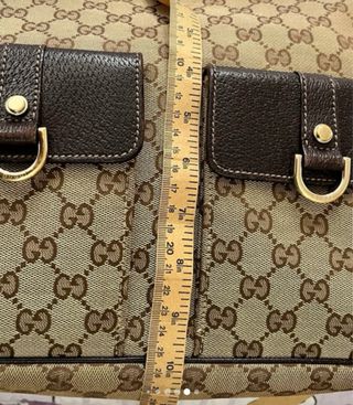Borsa a mano vintage Gucci, un classico intramontabile. - Motivo GG iconico. - Dettagli in pelle marrone. - Chiusura con fibbia metallica rotta e usurata come in foto