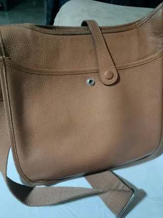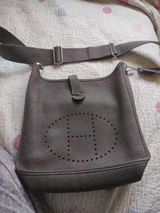 Borsa a tracolla del rinomato marchio Hermes, modello Evelyne. Il suo design è elegante e pratico. Materiale in pelle testurizzata. Cinturino regolabile. Dettaglio perforato distintivo.
