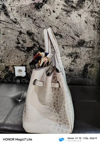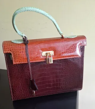 Borsa stile Hermes in coccodrillo con hardware dorato