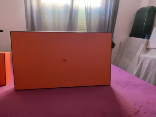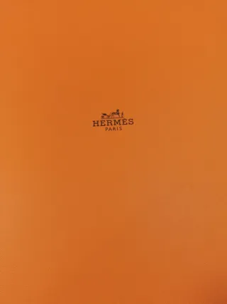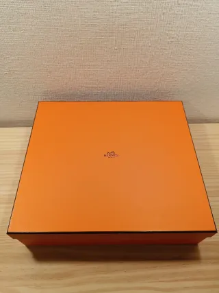 Scatola di presentazione originale del marchio Hermes. Colore arancione caratteristico. Design elegante e distintivo.