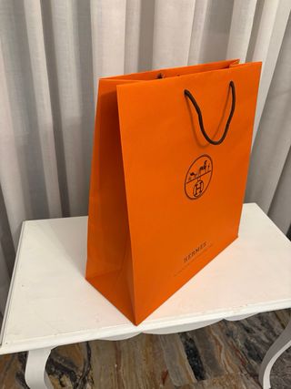 Busta Hermes originale con bigliettino, nuova mai usata misure 29 × 21 × 8,5.