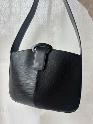 borsa a spalla Louis Vuitton Rêverie in pelle Epi nera. Questo modello vintage è realizzato in pelle Epi testurizzata, un materiale distintivo di Louis Vuitton noto per la sua durata. Caratteristiche principali Modello: Rêverie Materiale: Pelle Epi, un tipo di pelle di vacchetta con grana Colore: Nero Stile: Borsa a spalla (shoulder bag) o a mano, con una tracolla piatta in pelle e una chiusura con cinturino magnetico che passa attraverso un anello decorativo in plexiglas nero Interni: Fodera interna in microfibra o tessuto scamosciato con una tasca interna a soffietto o con zip