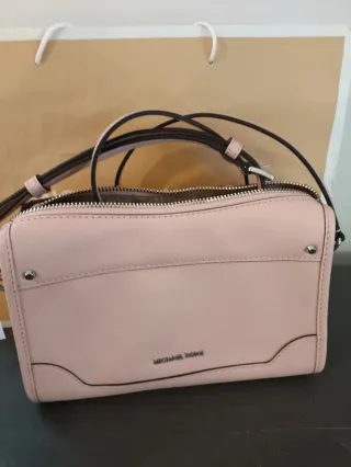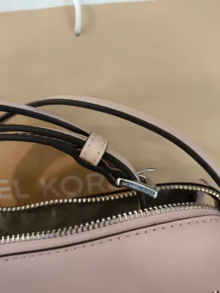 Borsa a tracolla Michael Kors in una delicata tonalità rosa cipria. - Design elegante e compatto. - Dettagli in metallo argentato. - Chiusura con zip. - Tracolla regolabile.