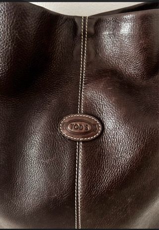 Borsa in pelle in un elegante tono marrone cioccolato. Design con cuciture bianche. Dettaglio ovale con logo del marchio. Borsa firmata Tod's in pelle cioccolato, molto bella. 36 cm x 36 cm circa. Tracolla regolabile 35 cm. #tods #borsacioccolato #borsapiel