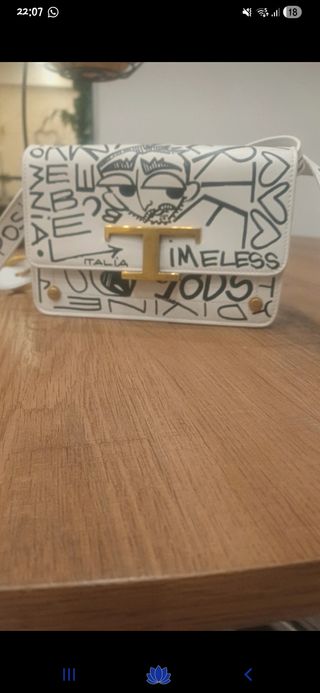Borsetta Tod's in edizione limitata, firmata Walter. Un pezzo unico con un design distintivo. - Design con stampa grafica e volto. - Dettaglio logo T dorato. - Scritta Timeless Tod's Italia.