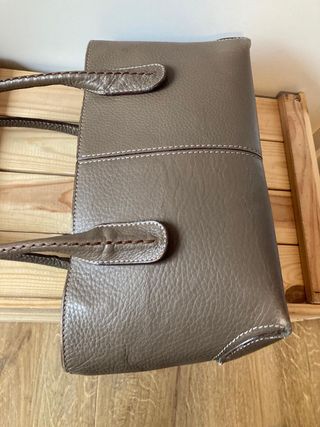Borsa ispirata a Tods. Borsa shopper esterna in pelle grigia e borsa organizer interna in pelle marrone. Possono essere indossati insieme o separatamente. Misura 36x24 cm e una profondità di 15 cm.