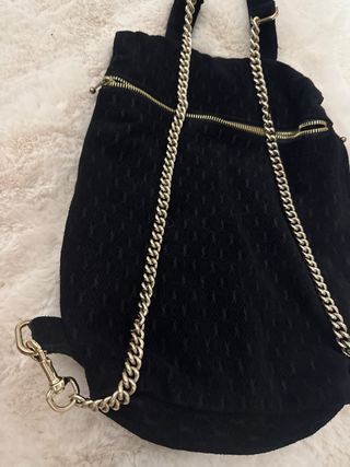 Zaino borsa con un design elegante e raffinato. - Tessuto con monogramma. - Dettagli in catena dorata. - Zip frontale con finiture dorate.