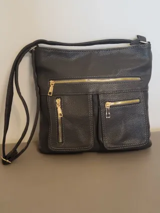 Borsa a tracolla in similpelle grigia, Dotata di diverse tasche con cerniera dorata - Materiale: similpelle - Tracolla regolabile In similpelle, bella tonalità di grigio scuro Interno in tessuto bordeaux con 3 tasche una delle quali con cerniera Nuova, senza cartellino Mis 28 x 26 Nuova senza etichetta