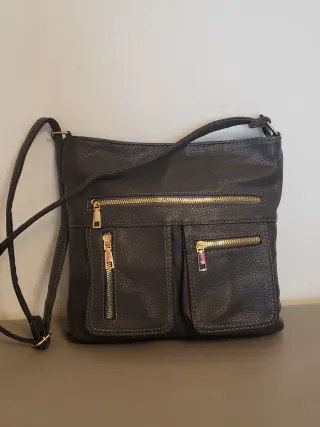 Pratica tracolla nera in morbidissima vera pelle 👜 Made in Italy 🇮🇹 Taschino frontale con cerniera Chiusura interna con bottone magnetico - Pari al nuovo 🎁 - Misure in foto 📏
