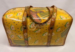 Borsa a bauletto rigida originale Naj-Oleari made in Italy vintage, dimensioni 38x19x22 cm, colore giallo lucido con areoplani. Articolo usato, con imperfezioni come da foto.