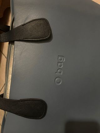 Borsa O bag in materiale gommoso, colore blu. - Manici in ecopelle neri. - Chiusura con zip. - Logo O bag impresso sul fronte.
