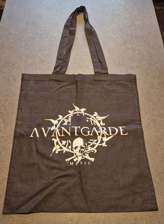 Borsa in tessuto nero con logo Avantgarde Music. - Logo Avantgarde Music con teschio e ossa incrociate. - Design circolare con elementi decorativi. - Manici resistenti.