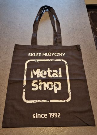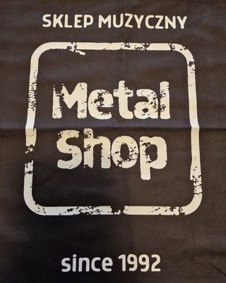 Borsa shopper in tessuto nero con logo Metal Shop e scritta SKLEP MUZYCZNY since 1992. - Design con logo Metal Shop in stile graffiato. - Scritta SKLEP MUZYCZNY sopra il logo. - Data since 1992 sotto il logo.