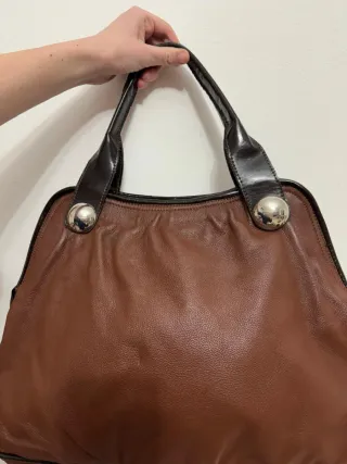 Borsa in pelle Made in Italy Indossabile sotto spalla e a mano Colore marrone e nero Con metalleria in metallo argentato Ampia e capiente Misure: 45x30x10 - Realizzata in Italia. - Materiale: vera pelle.