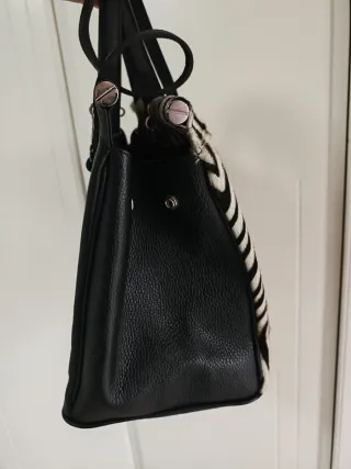 Borsa in vera pelle, un accessorio unico con un audace design zebrato. Unico imperfezione piccolo macchia sul retro guarda foto tutto resto perfetto - Realizzata in Italia. - Combinazione di pelle nera e fantasia zebrata pelo naturale