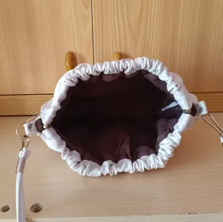 Elegante borsetta in ecopelle bianca, perfetta per ogni occasione. - Materiale: ecopelle. - Chiusura con coulisse. - Dettagli con catena e polsino.