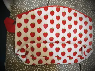 Pochette termica con fantasia di fragole, nuova. - Chiusura a zip. - Manico laterale in tessuto.