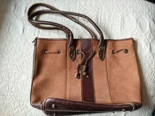 Borsa in pelle Timberland, un accessorio versatile e resistente. - Materiale: Pelle - Colore: Beige e marrone - Dettagli con cuciture a contrasto - Manici in pelle - Chiusura con coulisse e zip Borsa Timberland a spalla, utilizzabile anche a secchiello, vintage, fuori collezione, in pelle, con due manici superiori, taschino interno con logo Timberland e logo Timberland sul davanti. Chiusura con laccetti e occhielli (vedi foto). Presenta piccoli segni di usura dovuti al naturale invecchiamento della pelle e la fodera interna è un presenta segni di usura. Borsa rara Dimensioni da vuota: altezza 30 cm larghezza 46