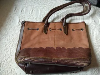 Borsa artigianale vintage in pelle, un pezzo unico. - Design unico con finiture sfrangiate. - Chiusura con zip.