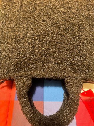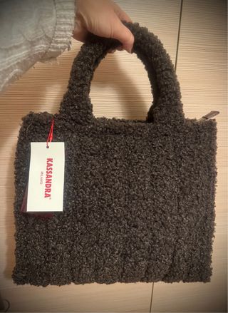 Borsa a mano o tracolla in tessuto bouclet color testa di moro. - Materiale bouclet. - Manici morbidi. - Chiusura con zip.