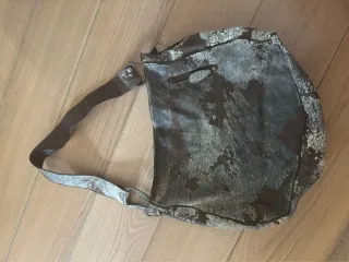 Borsa in tessuto con fantasia mimetica. Nuova, mai usata - Tasca frontale con zip, - Dettagli in ecopelle