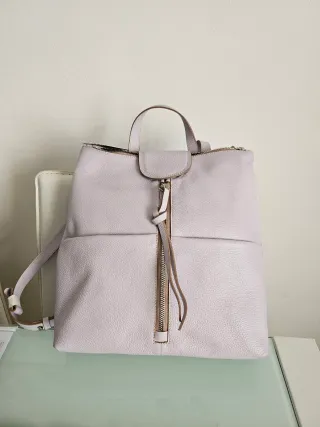 Zaino Gianni Chiarini nuovo con cartellino in vera pelle, varie tasche zip e scomparti. Misure 30x35. Spessore alla base 11cm. Prezzo originale 195 euro. Evitare offerte ridicole grazie. - Materiale: pelle - Colore: lilla chiaro - Chiusura con zip - Tasca esterna con zip - Manico superiore e spallacci regolabili