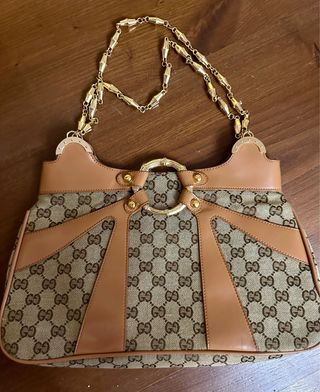 Borsa stupenda in ottime condizioni adatta ad ogni outfit - Dettagli in pelle marrone. - Catena dorata. - Anello centrale dorato con motivo a bambù.