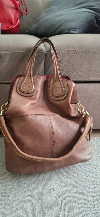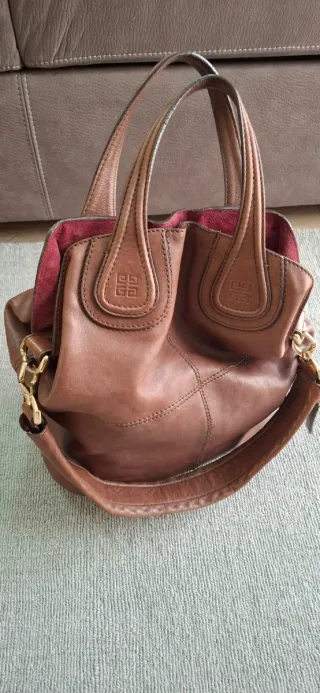Borsa givenchy nightingale in pelle marrone, interno magenta. Ottime condizioni generali, lievi segni mostrati in foto