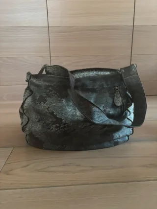 Borsa pelle artigianale vintage marrone/argento