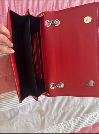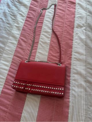 Elegante borsa a tracolla Zara di colore rosso, perfetta per aggiungere un tocco di stile. - Dettagli con borchie metalliche. - Tracolla a catena. - Chiusura a patta.