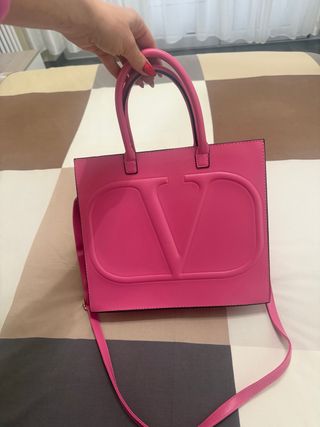 Borsa a mano dal design moderno e accattivante. - Colore fucsia vivace. - Logo V in rilievo sul fronte. - Manici superiori. - Tracolla aggiuntiva.