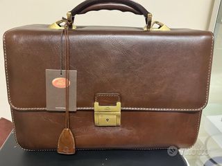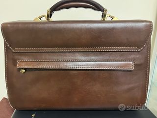 Elegante valigetta in pelle - Materiale: vera pelle - Colore: marrone - Design classico con tasche esterne - Tracolla regolabile incluse 2 scomparti e fascette porta ombrello, segni di usura come da foto