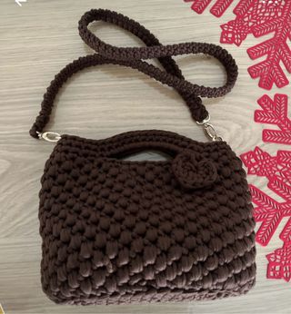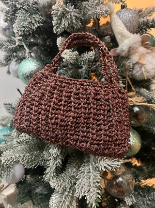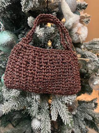 Borsa artigianale realizzata all'uncinetto. Un accessorio unico e alla moda. - Materiale: Filato lucido - Design: Forma a trapezio con manici intrecciati