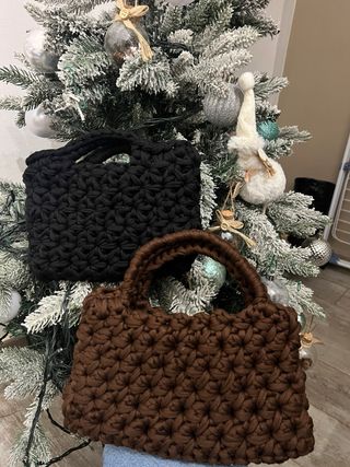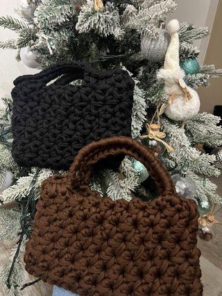 Set di due borse fatte a mano all'uncinetto, realizzate in cotone. - Una borsa color marrone. - Una borsa color nero.