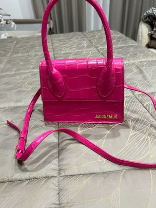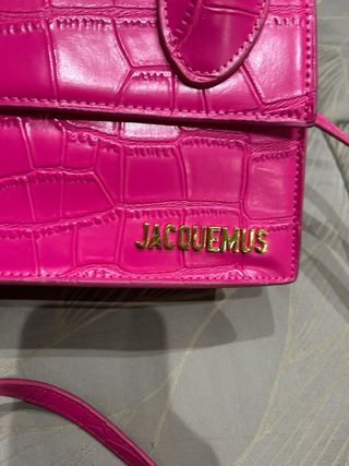 Borsa a mano con tracolla in pelle rosa. - Texture effetto coccodrillo. - Logo Jacquemus dorato sul davanti. - Manico superiore e tracolla regolabile.